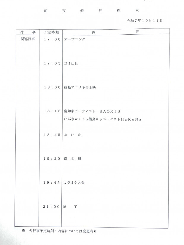 11日(土)の前夜祭を含め、出店やステージ発表など盛りだくさんです。