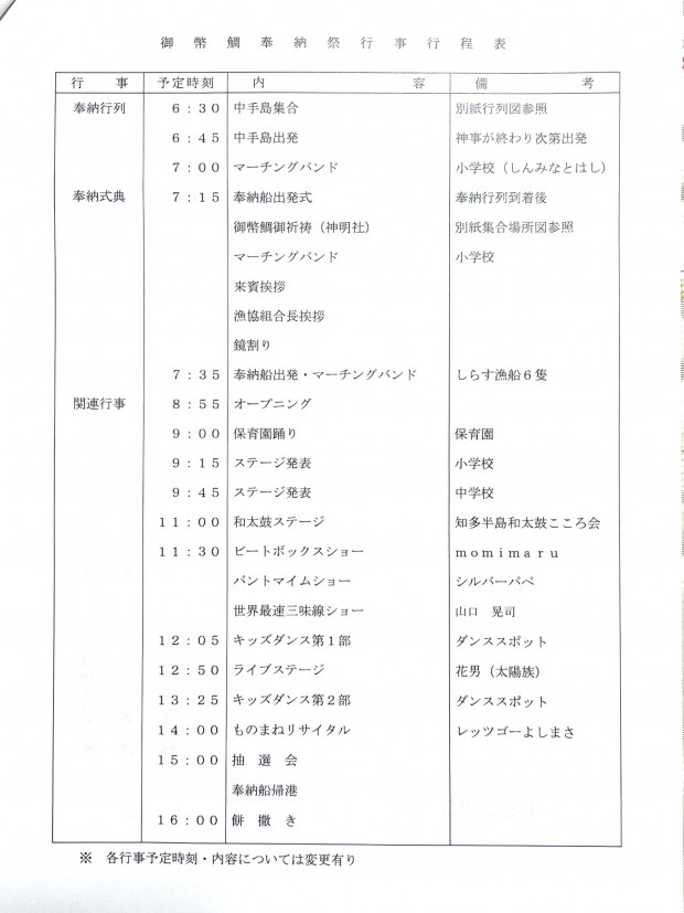 令和7年10月12日(日)篠島漁港にて、『おんべ鯛奉納祭』が行われます。