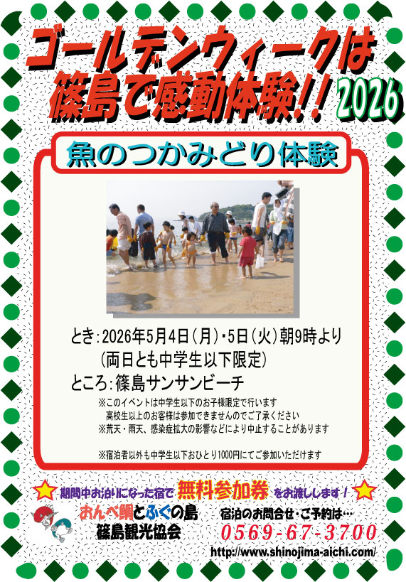 ☆前日に篠島観光協会加盟の宿にお泊りのお客様は宿から無料参加券がもらえます。